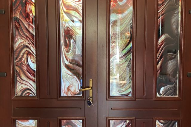 Házunkba, tiffany üveggel díszitett bejárati ajtónkon keresztül léphetünk.