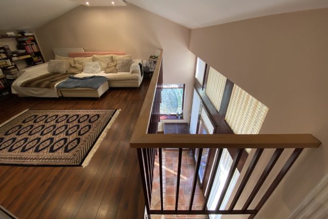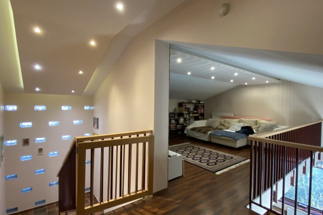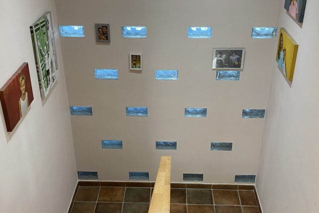 Belső lépcsőnkön keresztül, üvegtéglák mentén érkezünk felső szintünkre, mondhatni privát szféránkba.
