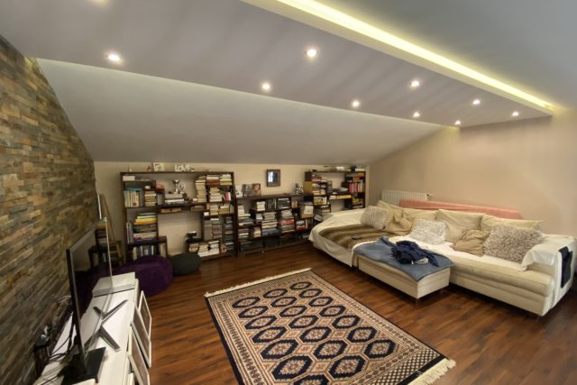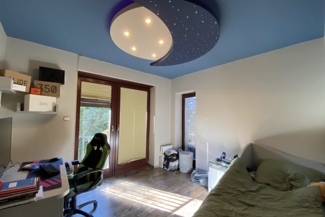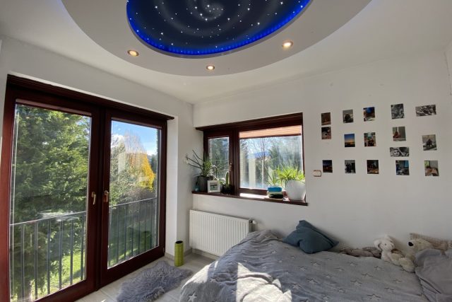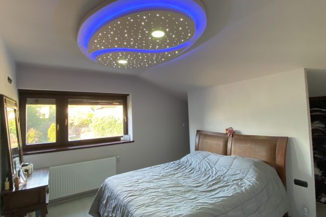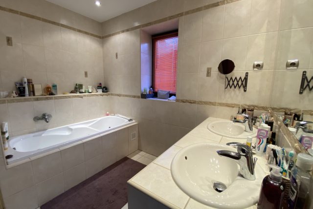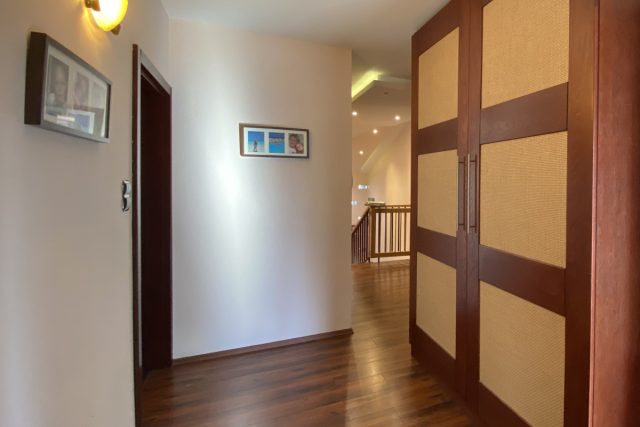 Közlekedőnkből, három különbejáratú hálószobába, melyből felnőtt hálónk, saját gardrobbal került kialakításra, káddal, zuhanyzóval felszerelt fürdőszobánkba, külön helyiségben található bidével is ellátott mellékhelyiségünkbe és dolgozószobánkba léphetünk.