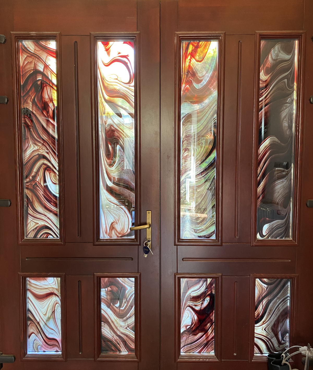 Házunkba, tiffany üveggel díszitett bejárati ajtónkon keresztül léphetünk.