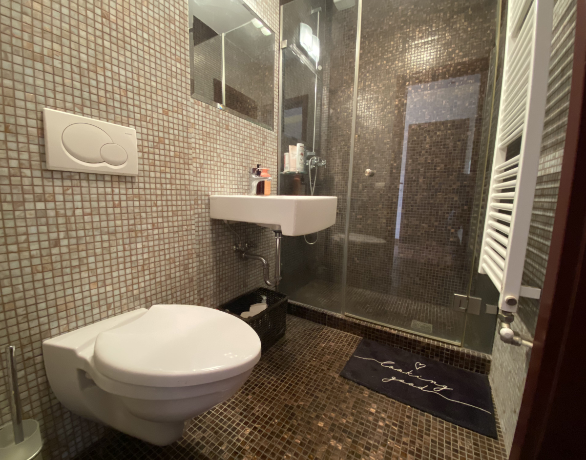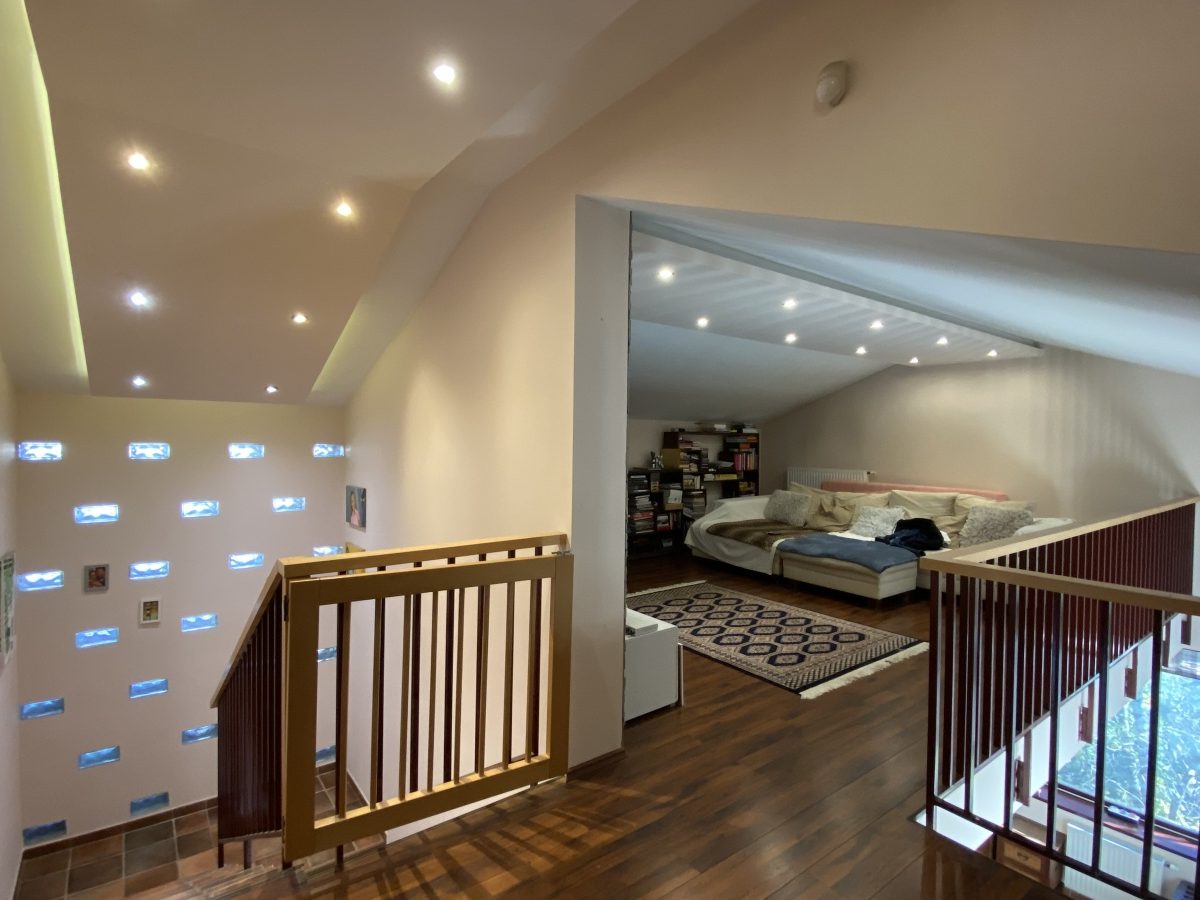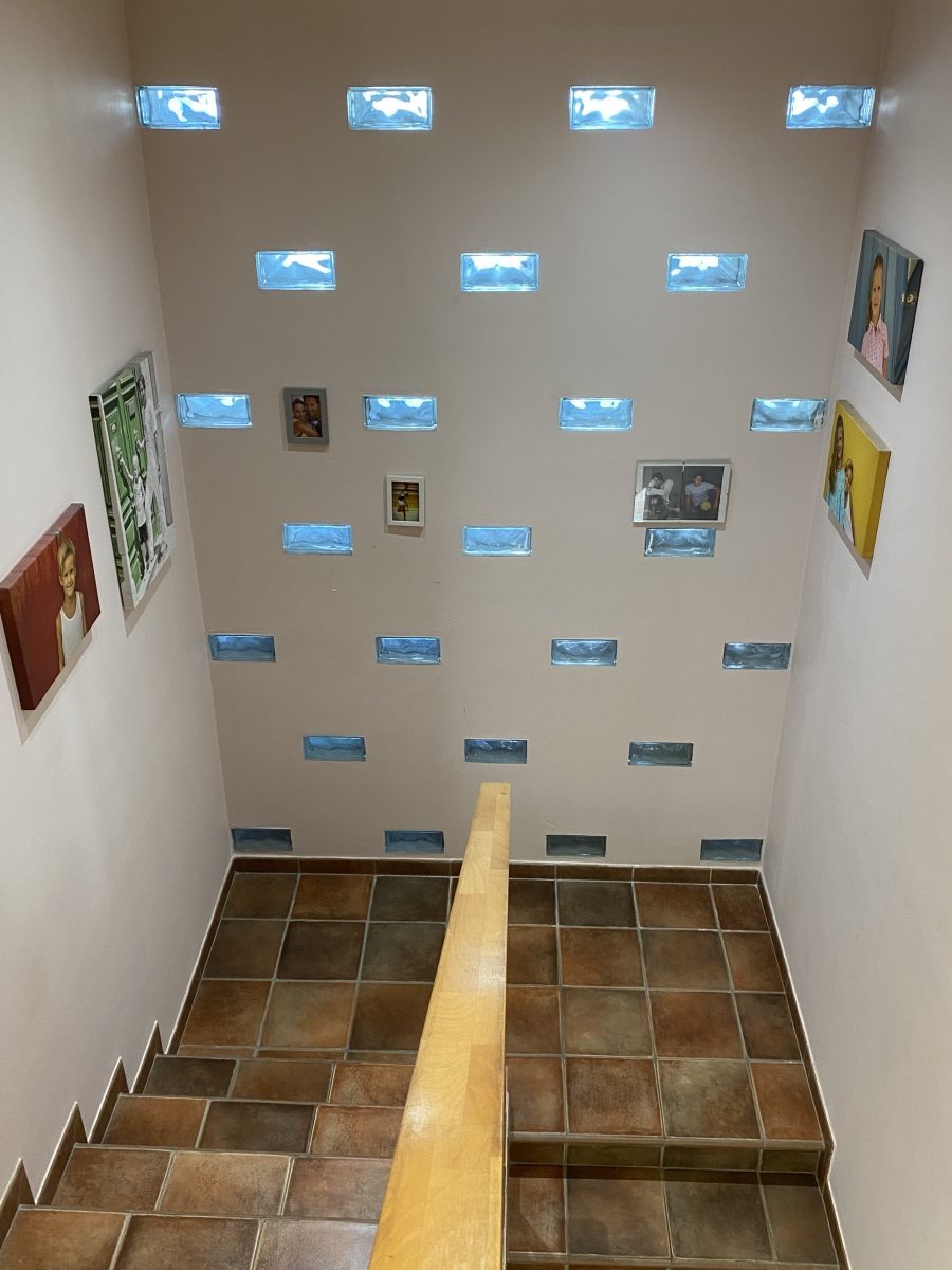 Belső lépcsőnkön keresztül, üvegtéglák mentén érkezünk felső szintünkre, mondhatni privát szféránkba.