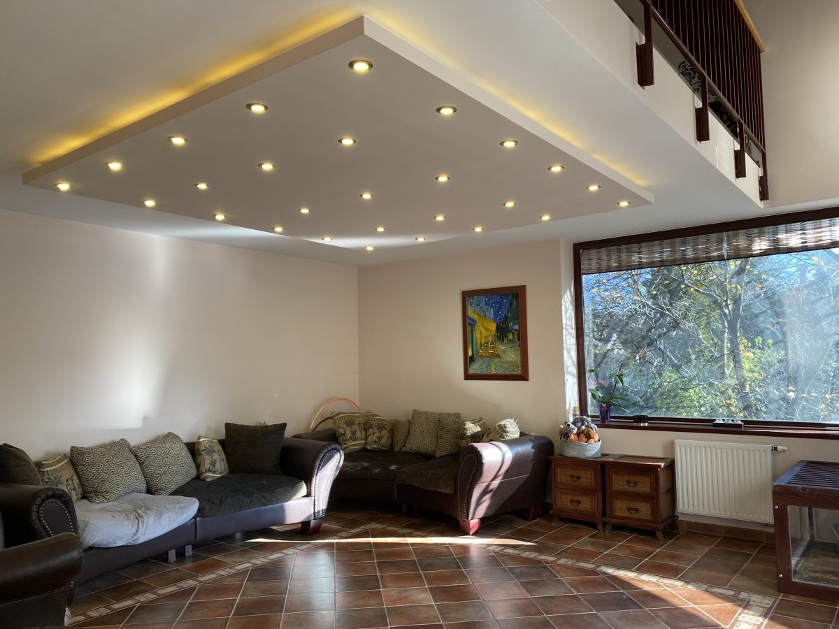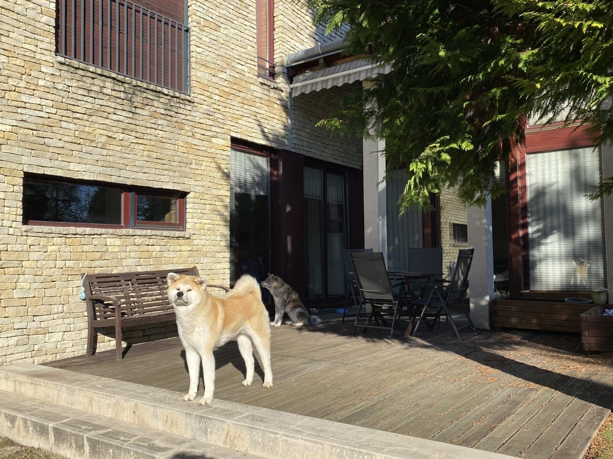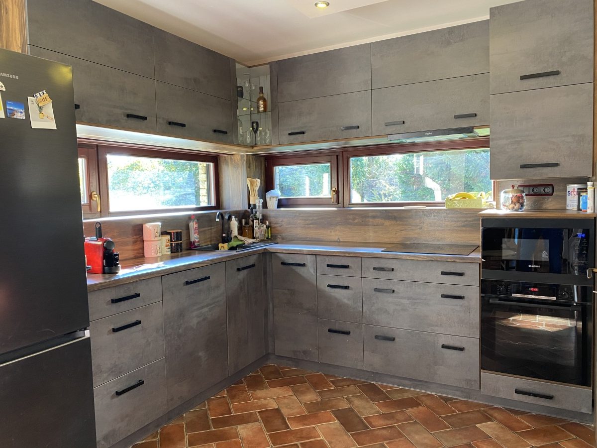 Új konyhánk, étkezőnk és óriási nappalink fényárban úszik a nagy, üvegfelületeknek, minőségi, fa nyílászáróinknak köszönhetően, ahonnan akár étkezőnkből, akár nappalinkból, tikfával borított teraszunkra is kiléphetünk.