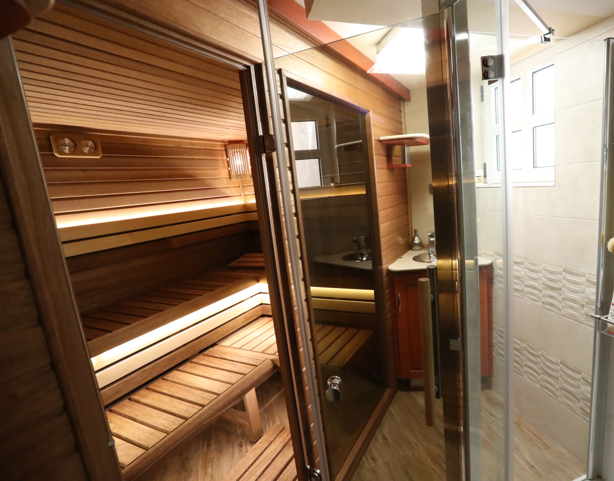 Gránit lépcsőnkön juthatunk felső szintünkre, ahol két fürdőszoba és négy szoba biztosítja a privát szféránkat. Tetőterünkön, két szobából is kijuthatunk felső teraszunkra, ahonnan lélegzetelállító, örök panorámában gyönyörködhetünk.