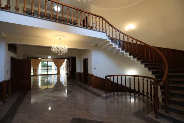 a szobák száma: 10 db (2 dolgozó, 1 nappali, 1 ebédlő 3 háló, földszinti aula, 1 vendégszoba, 2 személyzeti szoba)