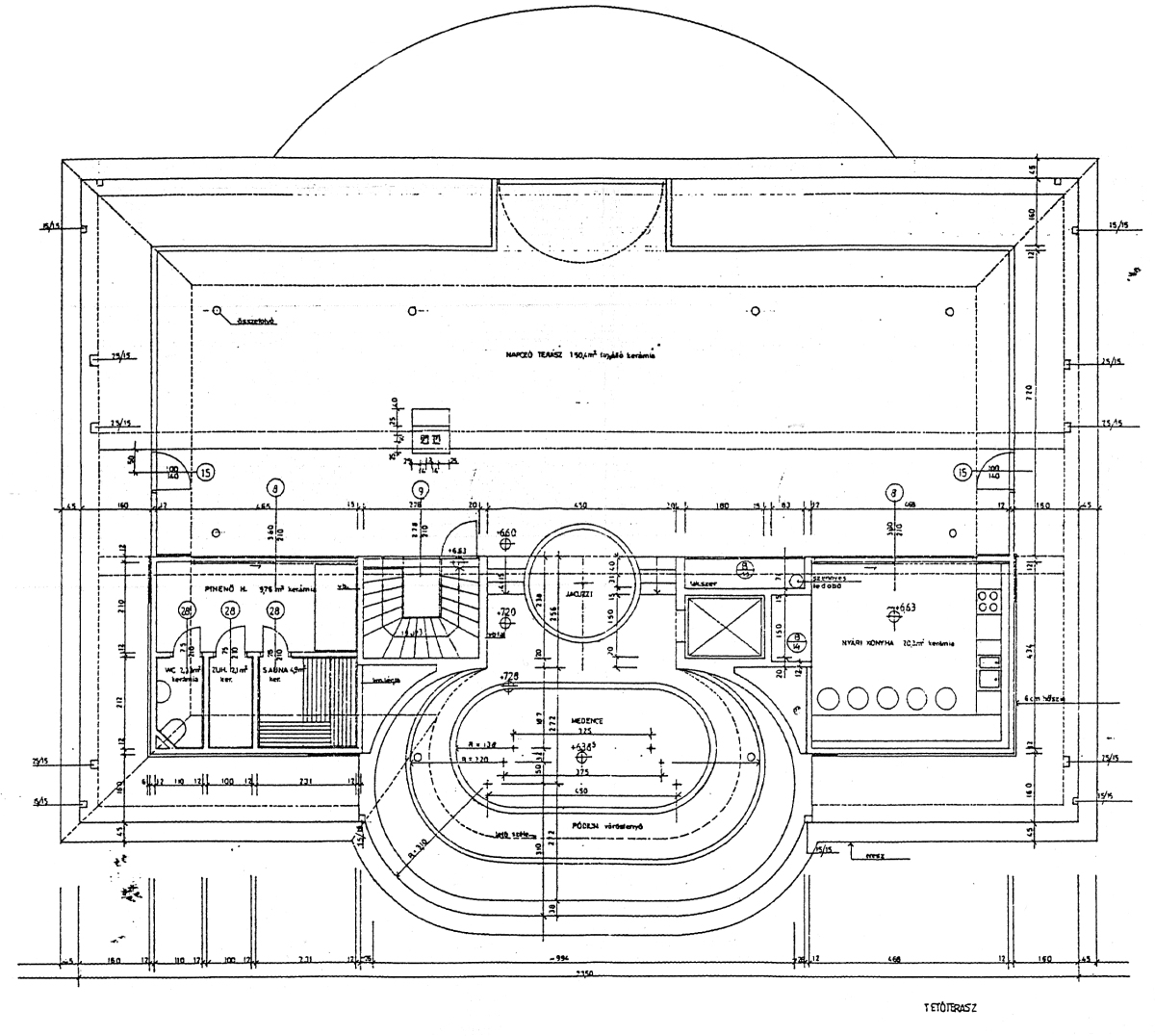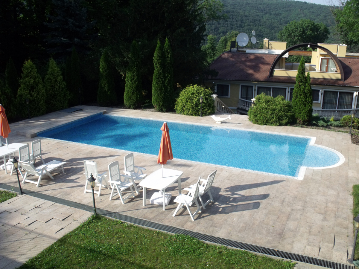 •külső medence 14 x 6 méter – jakuzzival, napozóval, melléképülettel