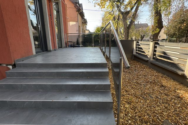Mind az első, mind a hátsó teraszunk 10-15 nm, így egy családi, baráti összejövetelnél is, kényelmesen elférünk.