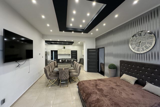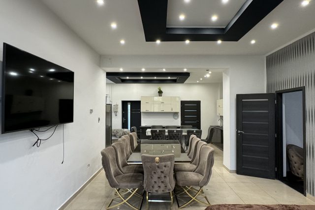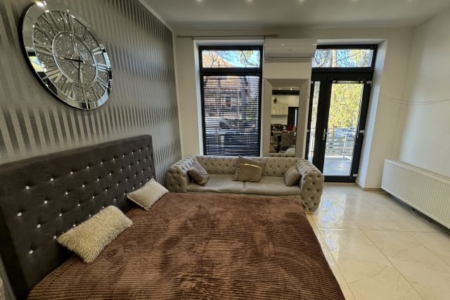 Utcafrontunkról belépve, hatalmas nappali-konyha-étkezőnkbe jutunk, amely csodálatos, minőségi, hidegburkolattal került kialakításra. A lakás, modern kialakítását tetézi az extra, mennyezeti világítás.Az említett közös térből, három külön bejáratú szobánk nyílik, melyek laminált padlólappal vannak ellátva. Fürdőszobánk, amelyben sarokkádunk és toalettünk is megtalálható, ugyanúgy külön nyílászáróval rendelkezik, mint az összes többi helyiség.