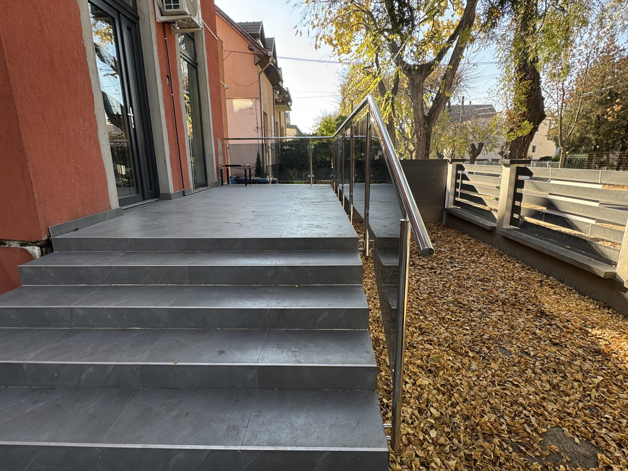 Mind az első, mind a hátsó teraszunk 10-15 nm, így egy családi, baráti összejövetelnél is, kényelmesen elférünk.