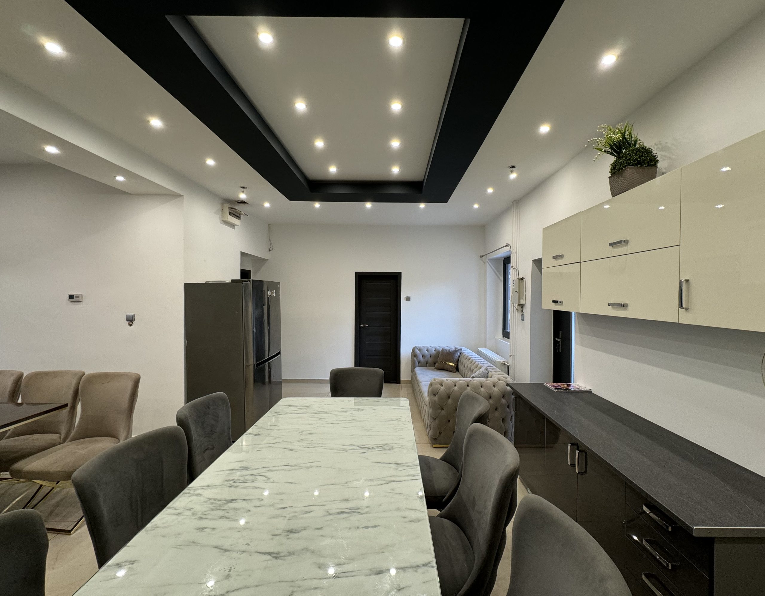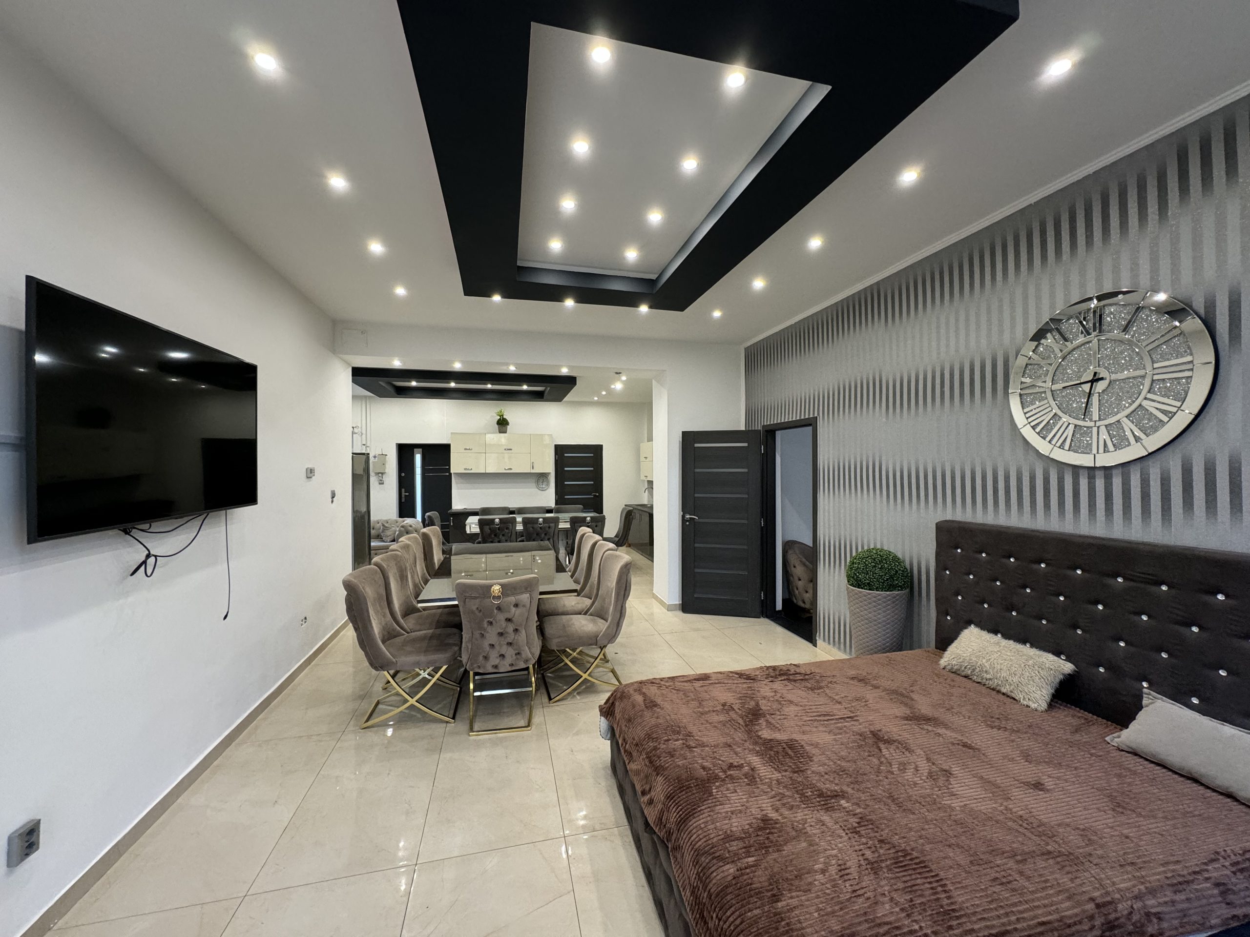 Utcafrontunkról belépve, hatalmas nappali-konyha-étkezőnkbe jutunk, amely csodálatos, minőségi, hidegburkolattal került kialakításra. A lakás, modern kialakítását tetézi az extra, mennyezeti világítás.Az említett közös térből, három külön bejáratú szobánk nyílik, melyek laminált padlólappal vannak ellátva. Fürdőszobánk, amelyben sarokkádunk és toalettünk is megtalálható, ugyanúgy külön nyílászáróval rendelkezik, mint az összes többi helyiség.