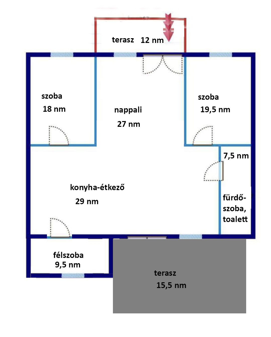 Otthonunk két bejárattal is rendelkezik, mind az első, mind a hátsó teraszunkról beléphetünk ingatlanunkba, így akár két külön lakás is kialakítható a jelenlegi lakásunkból.